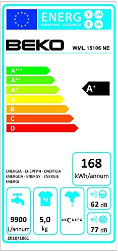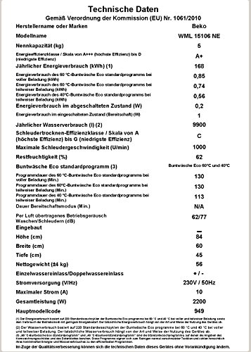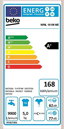 Beko WML 15106 NE Waschmaschine Frontlader / A+C / 168 kWh/Jahr / 1000 UpM / 5 kg / weiß / Programmablaufanzeige / Mini 30-Programm by Beko