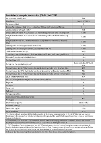 For this great price, the Beko WML 71633 MEU Waschmaschine FL / A+++ / 171 kWh/Jahr / 1600 UpM / 7 kg / Mengenautomatik / weiß comes widely recommended and is always a regular choice with many people. Beko have provided some nice touches and this results in great value for money.