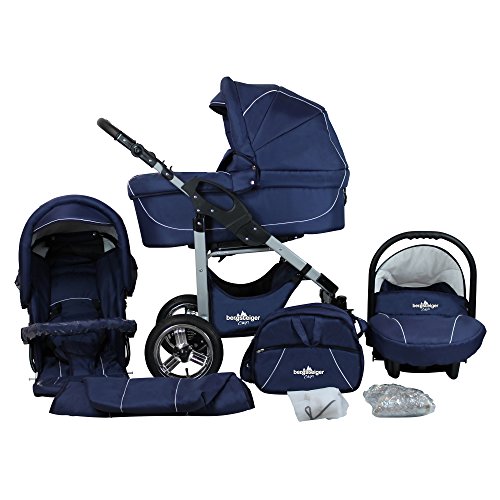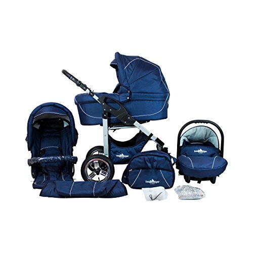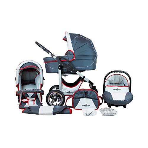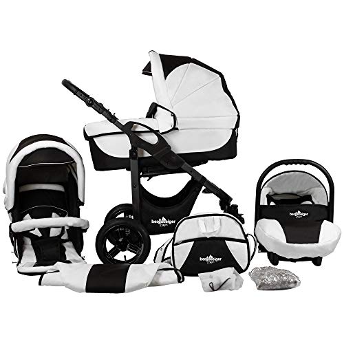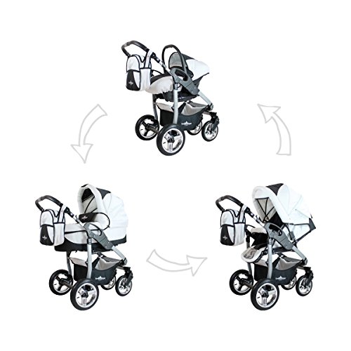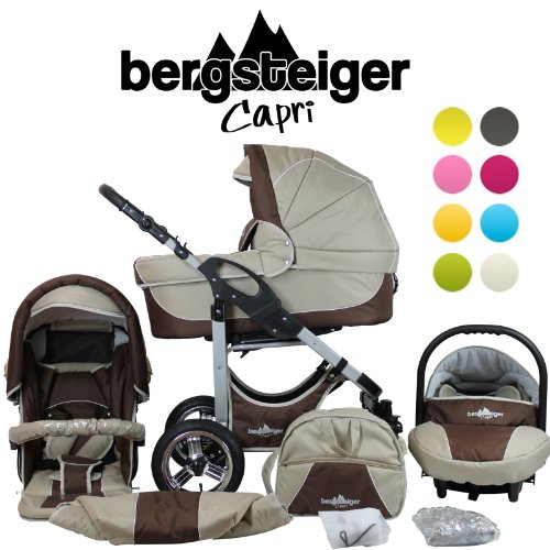 Bergsteiger Capri Kinderwagen 3 in 1 Kombikinderwagen Megaset 10 teilig inkl. Babyschale, Babywanne, Sportwagen und Zubehör