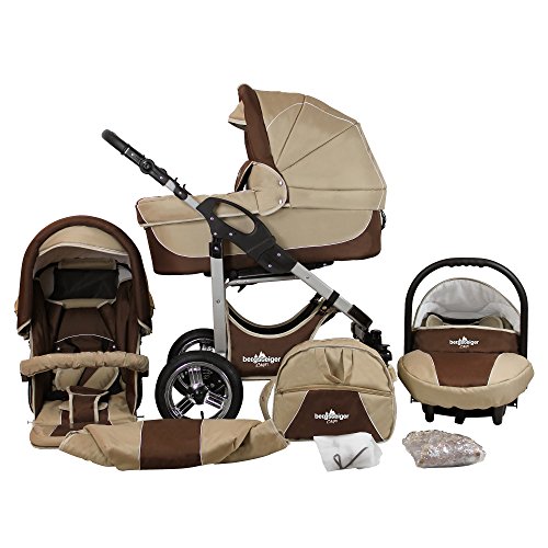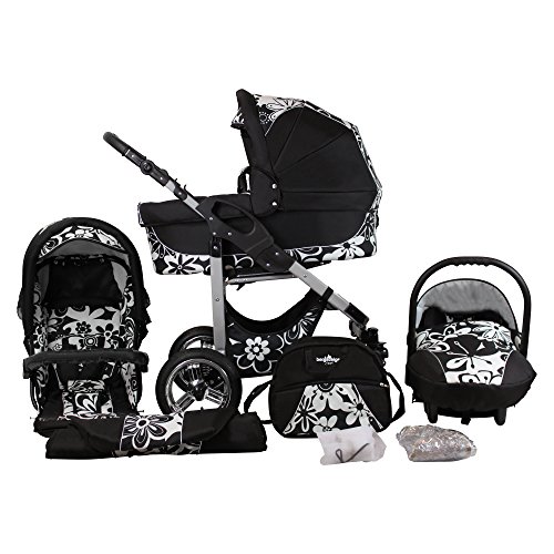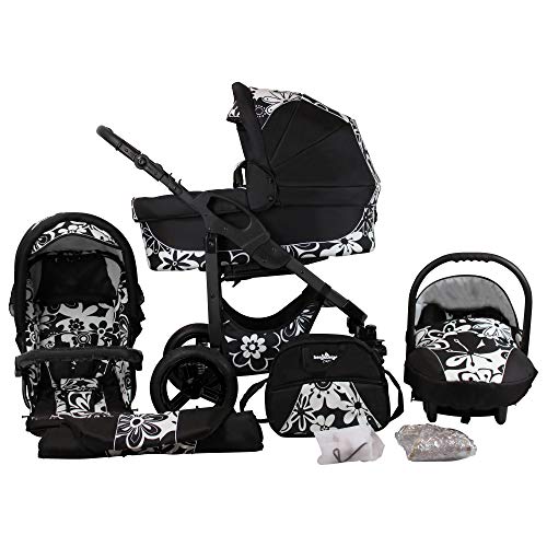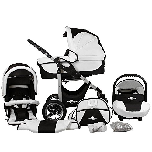 Bergsteiger Capri Kinderwagen 3 in 1 Kombikinderwagen Megaset 10 teilig inkl. Babyschale, Babywanne, Sportwagen und Zubehör