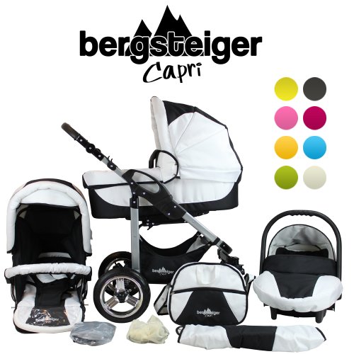 Bergsteiger Capri Kombikinderwagen 3-in-1 - System; Autositz; Schwenkräder (Megaset 10 - teilig; 8 Farben) by Bergsteiger