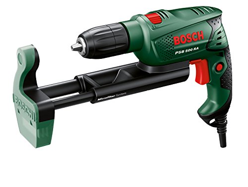 For this price, the Bosch PSB 500 RA Schlagbohrmaschine "Easy" + Staubabsaugung + Koffer (500 W, max. Bohr-Ø Beton 10 mm, 1,8 kg) comes widely respected and is a popular choice with most people. Bosch have added some nice touches and this results in great value.
