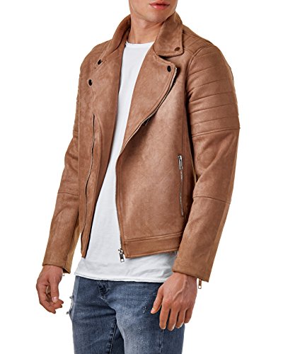 Burocs MR18-4 Herren Kunst-Lederjacke Biker-Jacke Schwarz Rot Camouflage S-XXL, Größe:XL, Farbe:Beige Suede