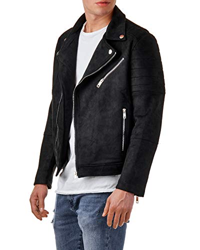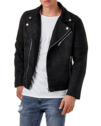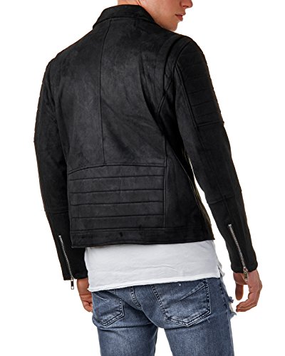 Burocs MR18-4 Herren Kunst-Lederjacke Biker-Jacke Schwarz Rot Camouflage S-XXL, Größe:XXL, Farbe:Schwarz Suede