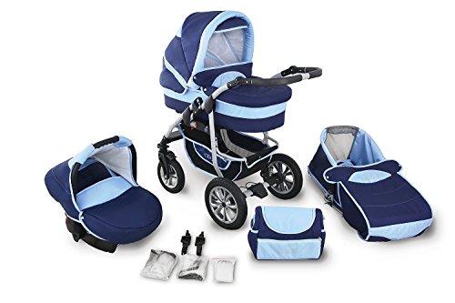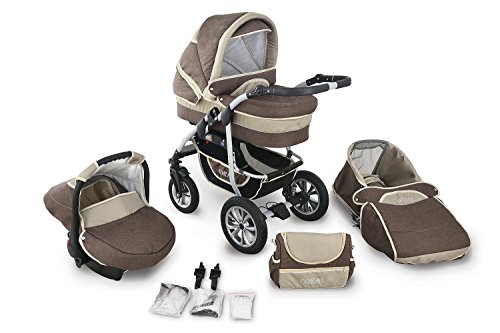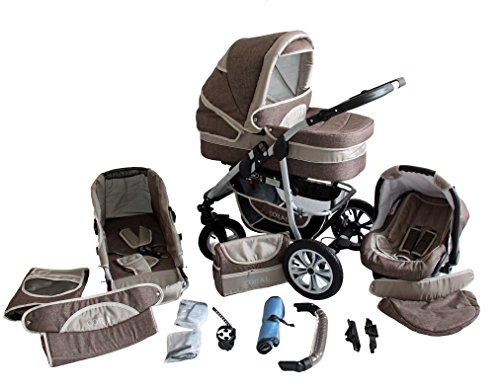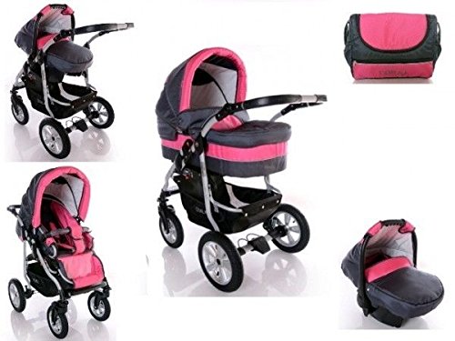 For this reduced price, the Clamaro 'CORAL 2018' Kinderwagen 3 in 1 Kombi System (24 Farben wählbar) mit Babywanne, Sport Buggy und Auto Babyschale Aufsatz (ISOFIX), Alu-Stahl Gestell mit Luftreifen und einstellbarer Fahwerk Federung, vorne mit 360° Schwenkrädern und hinten mit EASY-STOP Bremse comes widely recommended and is a regular choice for many people. Clamaro have added some nice touches and this equals good value.