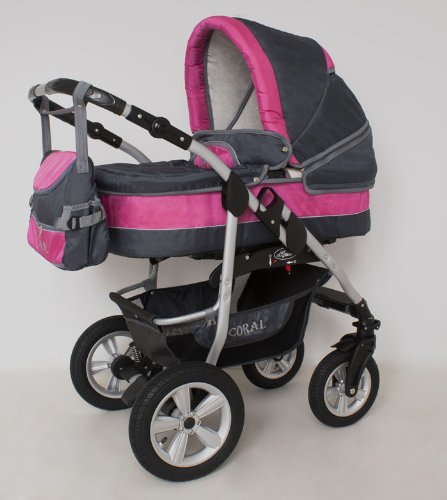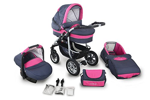 Virtuelle Einkaufswelt are delighted to offer the fantastic Clamaro 'CORAL 2018' Kinderwagen 3 in 1 Kombi System (24 Farben wählbar) mit Babywanne, Sport Buggy und Auto Babyschale Aufsatz (ISOFIX), Alu-Stahl Gestell mit Luftreifen und einstellbarer Fahwerk Federung, vorne mit 360° Schwenkrädern und hinten mit EASY-STOP Bremse.