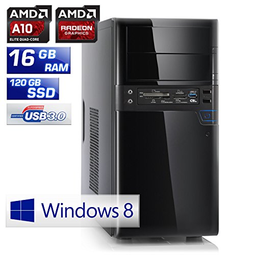 For this price, the CSL PC Sprint 5771W8 inkl. Windows 8.1 - AMD A10-6790K APU 4x 4000MHz, 16GB RAM, 120GB SSD, 1000GB HDD, Radeon HD 8670D, DVD, USB 3.0 is highly recommended and is a regular choice for lots of people. CSL-Computer have included some excellent touches and this equals great value.