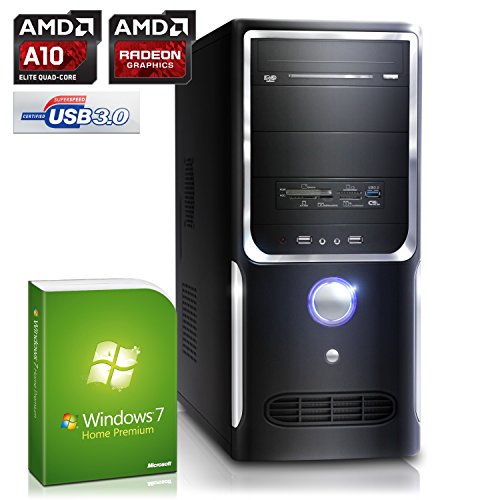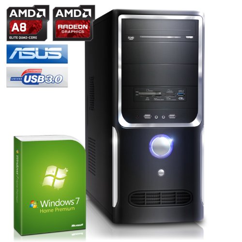 For this price, the CSL Sprint H5766 inkl. Windows 7 - AMD A8-6600K APU 4x 3900MHz, 8GB RAM, 1000GB SSHD, Radeon HD 8570D, DVD, USB 3.0 comes widely recommended and is a popular choice for most people. CSL-Computer have added some nice touches and this results in great value for money.