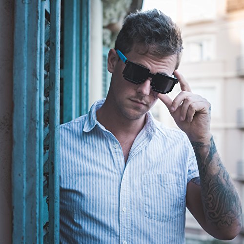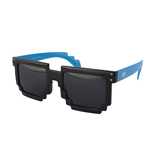 EL-Sunprotect®400 Nerdbrille Brille Nerd Sonnenbrille Hornbrille Exclusiv Geekinvader Gamer Geek 8 Bit 8-Bit Blau Schwarz
