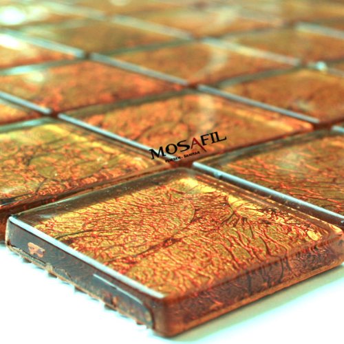 Glasmosaik Fliesen 48x48x8mm Orange Metall from Mosafil