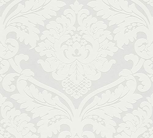 Livingwalls 554338 Vliestapete Flock, Mustertapete, barock, weiß by Livingwalls