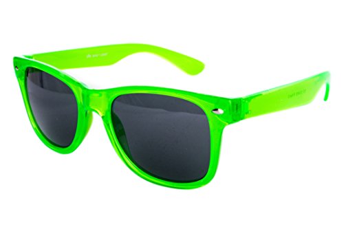 Nerd Sonnenbrille im Wayfarer Stil Retro Vintage Unisex Brille - Neon Grün Transparent