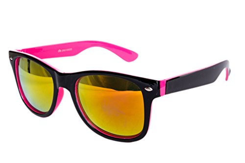 Nerd Sonnenbrille im Wayfarer Stil Retro Vintage Unisex Brille - Pink Schwarz Feuer Verspiegelt
