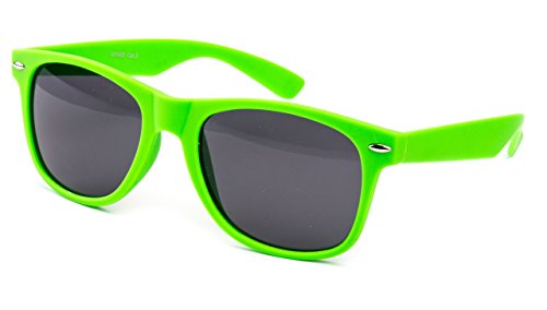 Nerd Sonnenbrille Wayfarer Stil Brille Pilotenbrille Vintage Look - Ca 80 verschiedene Farben/Modelle wählbar Gummiert Neon Grün NRSNG from Buddhastyle