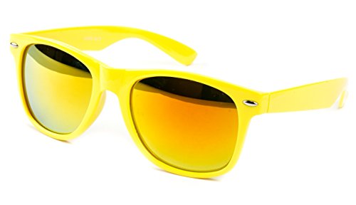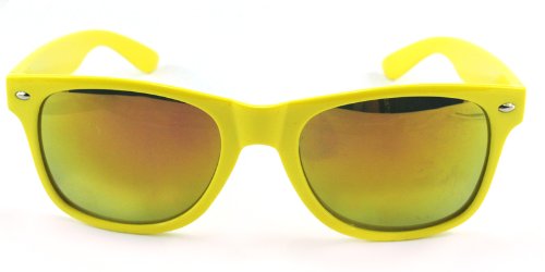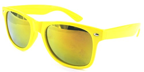 Nerd Sonnenbrille Wayfarer Stil Brille Pilotenbrille Vintage Look - Ca 80 verschiedene Farben/Modelle wählbar (One size, F6 Neon Gelb Bunt Verspiegelt) from Buddhastyle