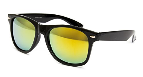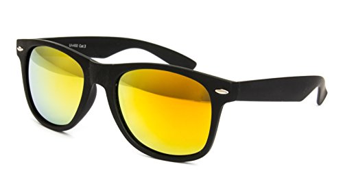 Nerd Sonnenbrille Wayfarer Stil Brille Pilotenbrille Vintage Look - Ca 80 verschiedene Farben/Modelle wählbar Schwarz Gelb Verspiegelt U1