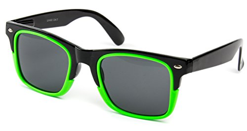 Nerd Sonnenbrille Wayfarer Stil Brille Pilotenbrille Vintage Look - Ca 80 verschiedene Farben/Modelle wählbar Schwarz Neon Grün S2