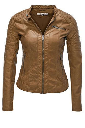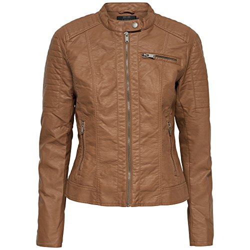 Only Damen Kunstlederjacke Übergangsjacke Biker-Jacke (S, Cognac)