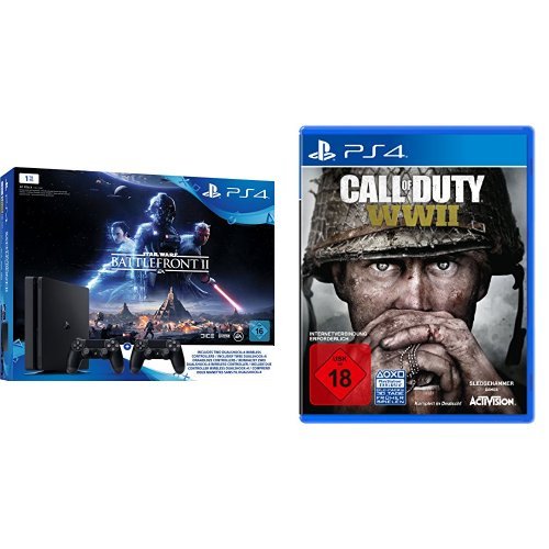 Virtuelle Einkaufswelt are proud to present the famous PlayStation 4 - Konsole (1TB, schwarz, slim) inkl. StarWars Battlefront II + 2 DualShock Controller + Call of Duty: WWII.