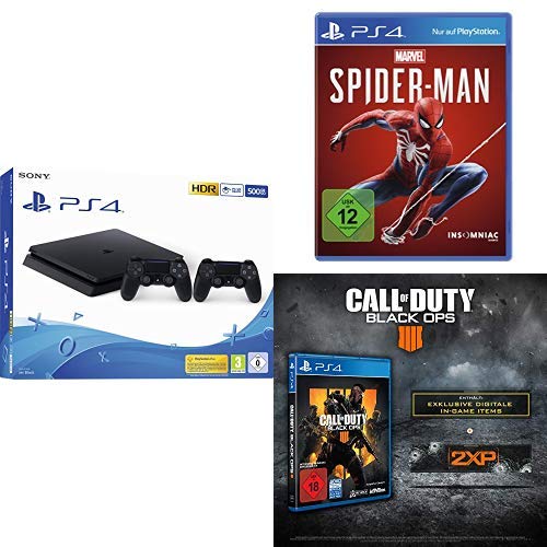 PlayStation 4 - Konsole (500GB, schwarz, slim, F-Chassis) inkl. 2 DualShock 4 Controller + Marvel’s Spider-Man - Standard Edition - [PlayStation 4] + Call of Duty: Black Ops 4 Standard Plus Edition - [PlayStation 4] (exkl. bei Amazon) from Sony