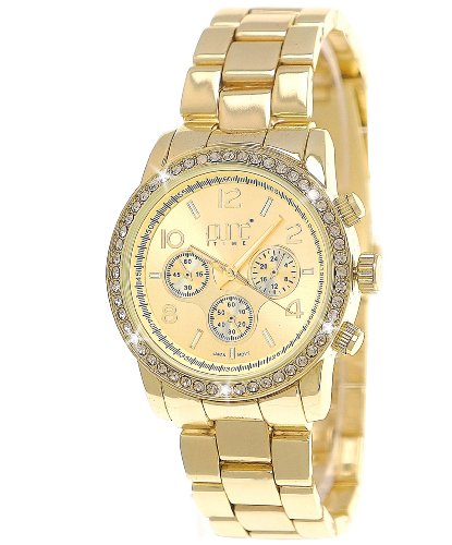 Pure Time Designer Damenuhr,Damen Strass Uhr in Chronograph Optik Gold from Pure Time