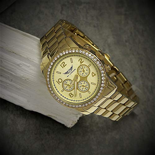 Virtuelle Einkaufswelt are delighted to present the fantastic Pure Time Designer Damenuhr,Damen Strass Uhr in Chronograph Optik Gold.