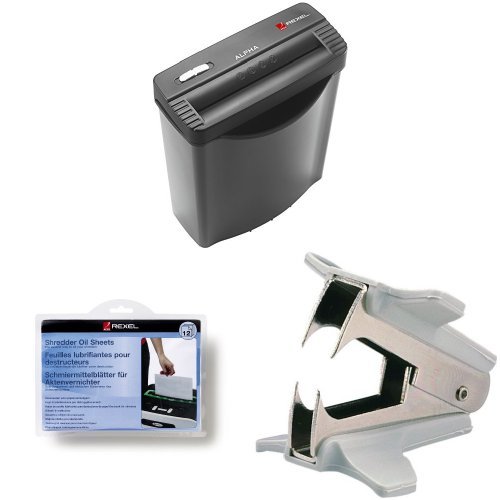 Rexel Alpha Aktenvernichter-Set + Schmiermittelblätter + Enthefter